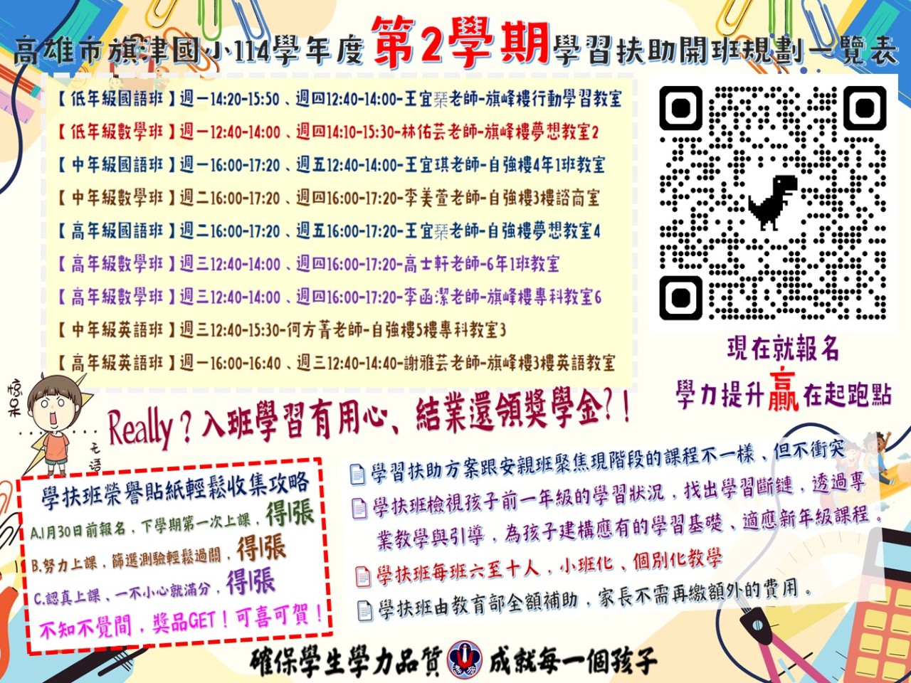 衛訓組:旗津國小114學年度第二學期課後社團報名至3/6(五)止